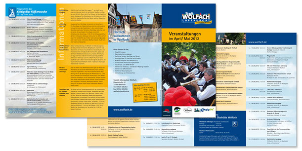 Design und Layout Folder- und Prospektserie für die Touristinformation Wolfach.