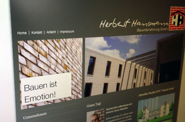 "Bauen ist Emotion" - unter dem neuen Slogan, mit markanten Texten und beeindruckenden Architektur-Bilder kommuniziert die Hansmann Bauunternehmung GmbH aus Haslach-Schnellingen über Ihr Handwerk und Unternehmens-Identität. Design, Texte, Komplettabwicklung Print-Projekt. Webdesign und Umsetzung Website.